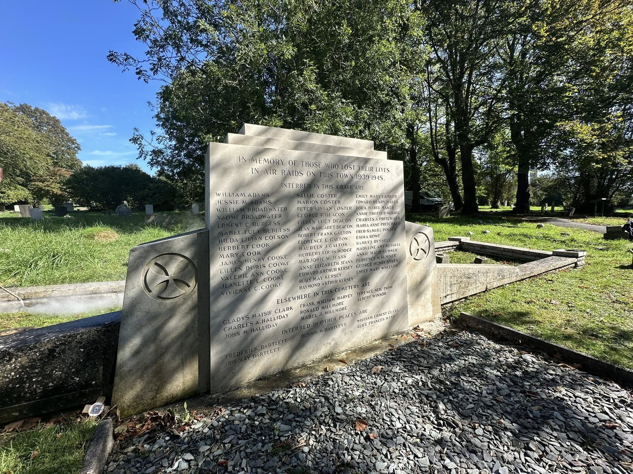 A number of mass casuaty memorials were cleaned by the Victoria Cross Trust to recognise the loss that communities in peace and war time have experienced. These included 317 sailors drowned in 1878 when HMS Eurydices capsized - 71 civilians killed in Doncaster (15) and East Cowes (56) during the blitz - 7 Trinity Lighthousemen and 6 Air raid Wardens killed in the line of duty. Perhaps the most tragic was the loss of 6 children of the Chiverton family killed in a bombing raid in Whippingham in 1942. After the work was completed a member of the Chiverton family commented that she was so happy that they had not been forgotten.