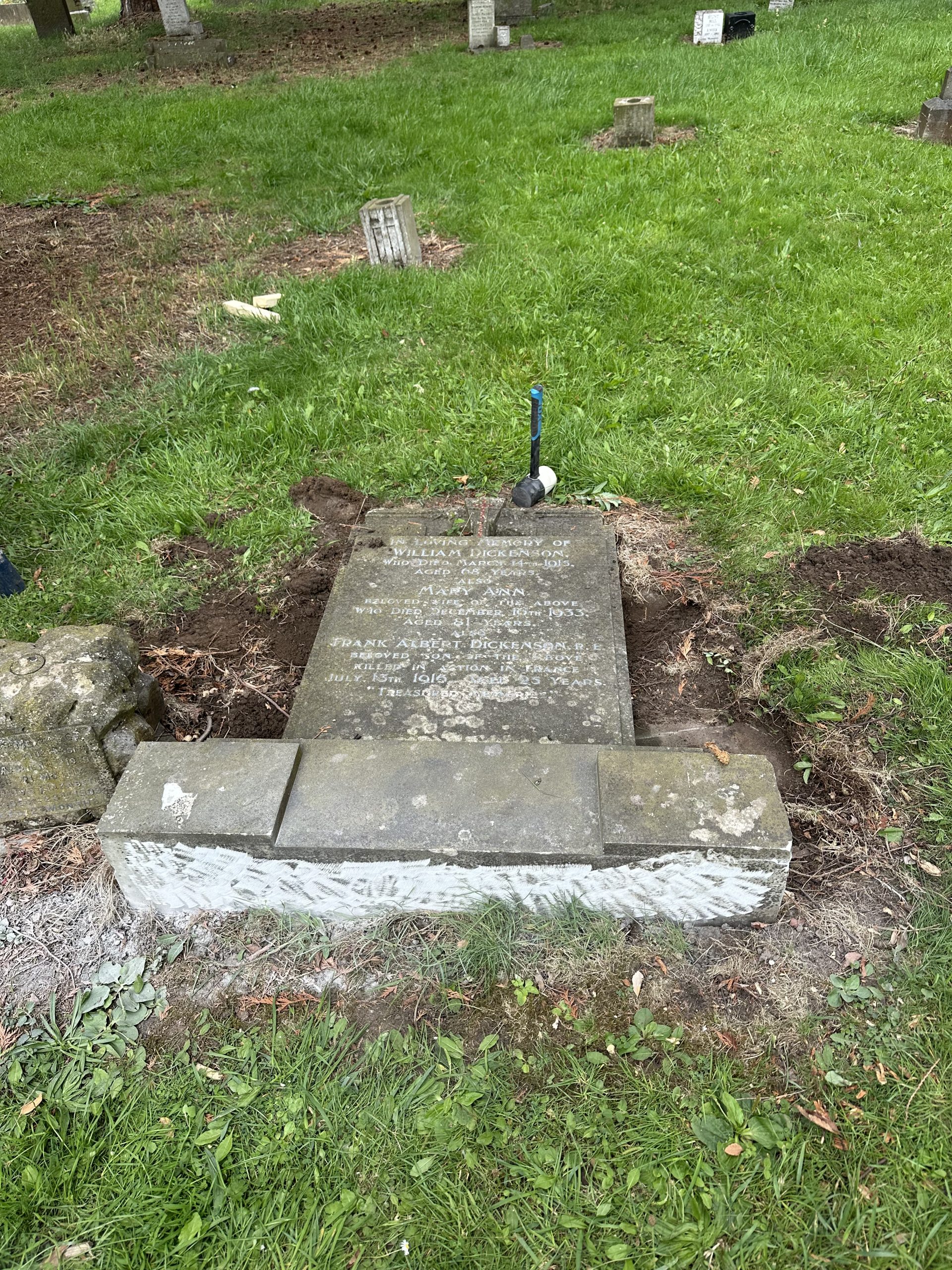 The Cross Keys hotel and restaurant hosted us at the end of very long days and volunteers from the friends group dropped in to lend their support. Ian Merryweather cousin of Private Harry Chilton Merryweather who was killed in action on 23rd October 1917, called in to see the restoration on his ancestors headstone (shown below).