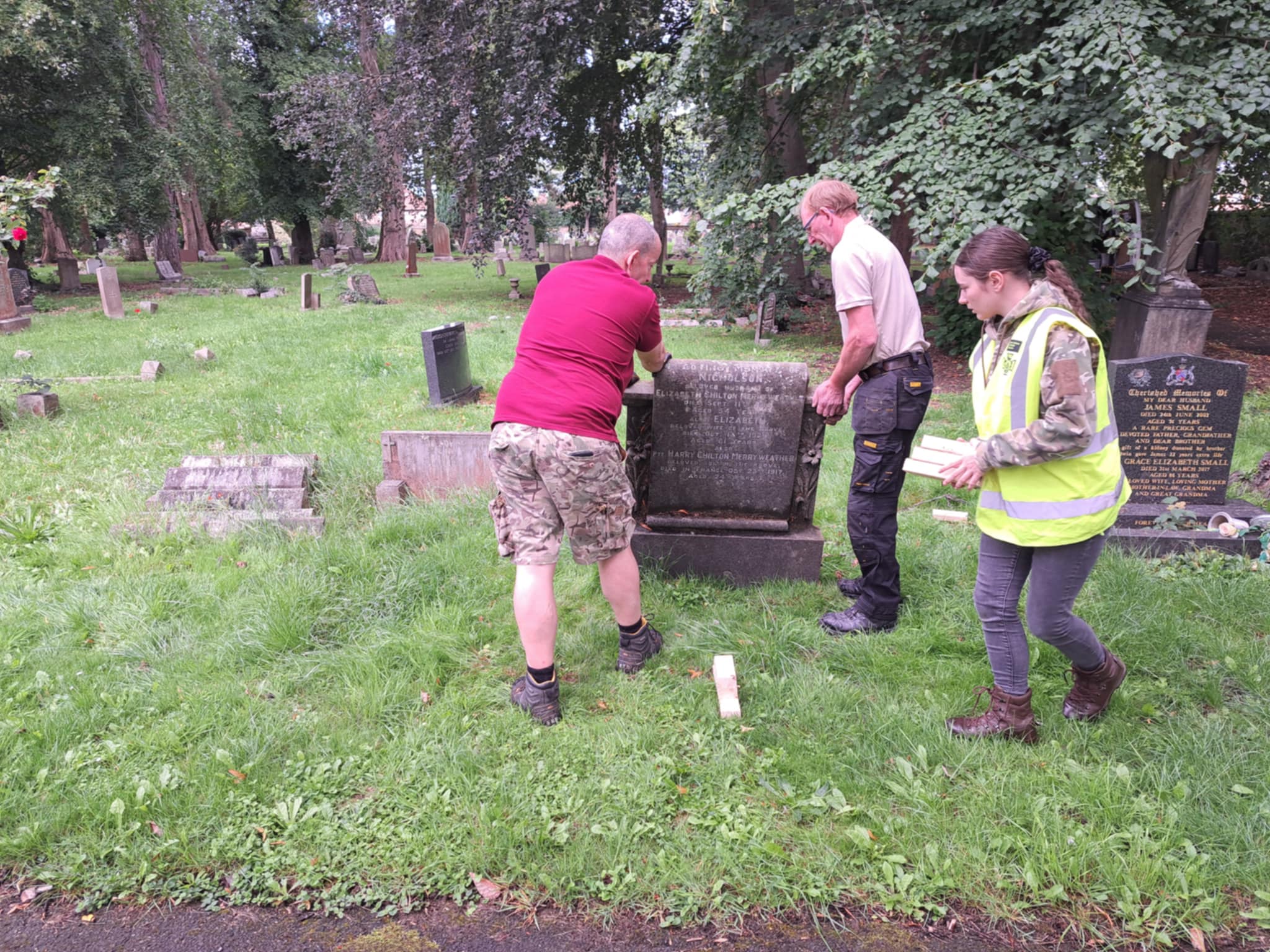 The team from the Victoria Cross Trust were out and about in Eston, Cleveland undertaking a restoration marathon between 28th to 30th July 2025. Magnificent support received from the Friends of Eston Cemetery volunteer Vince Smith alongside Andy Pearson and Trevor Thompson from the local authority enabled the team to complete 28 restorations seven of which were rebuilds of memorials.
