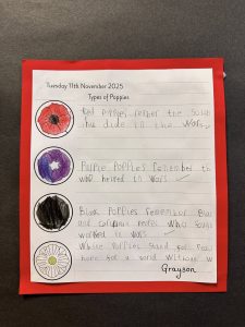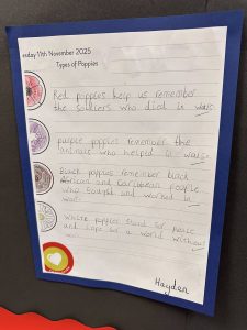This time of year sees volunteers from the Trust visiting local schools to help students understand more about Remembrance and the work of the charity. One such visit to Norton Primary in Doncaster resulted in some fantastic work by the children. They then invited us back to an open evening where they proudly displayed their work to family members.