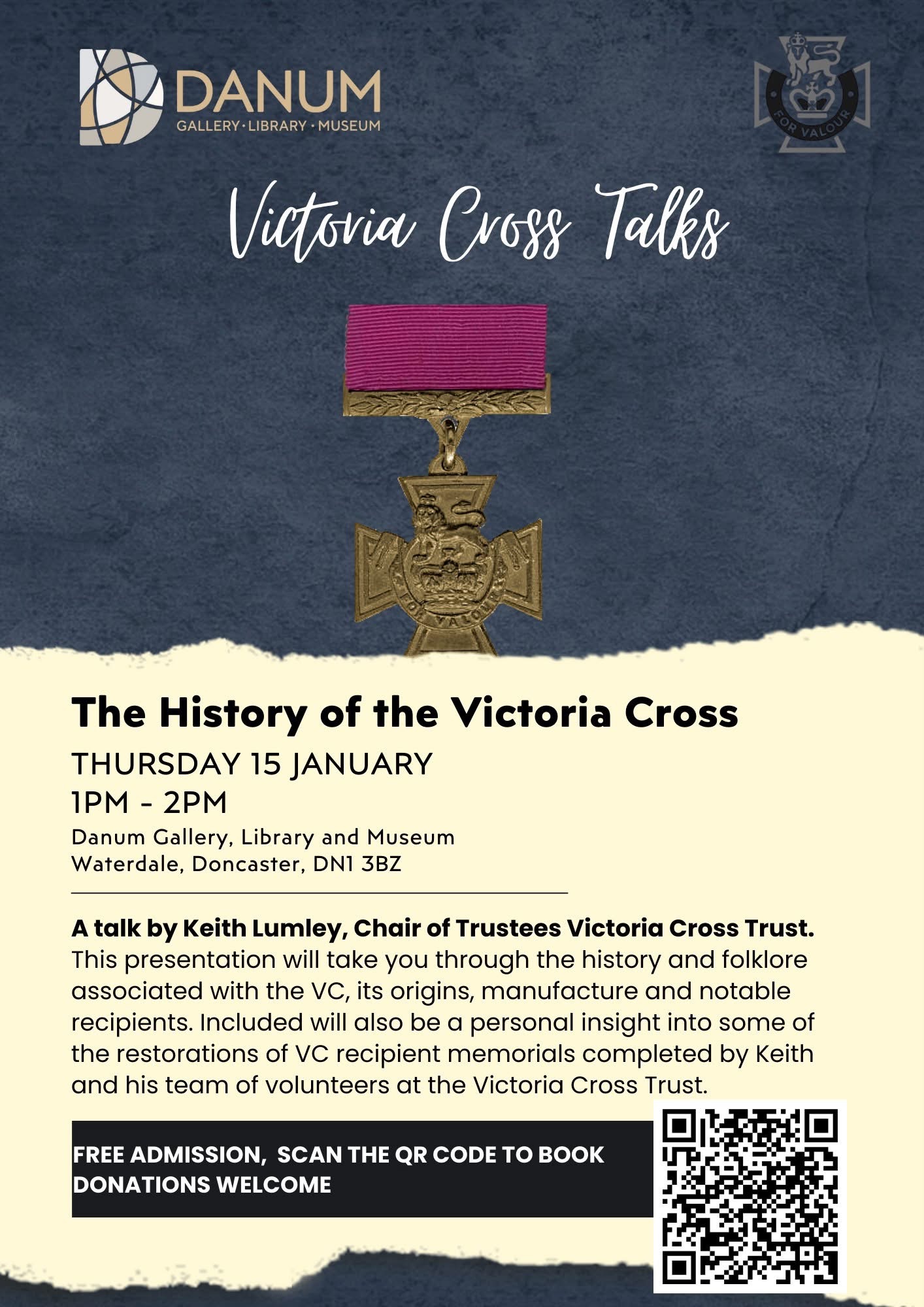 Our team are asked regularly to provide talks to schools, professional bodies, community and special interest groups. This has included a recent programme of talks on the Victoria Cross at the Doncaster Galleries Library and Museum and even cruise ship companies seeking our performances for their itineraries.